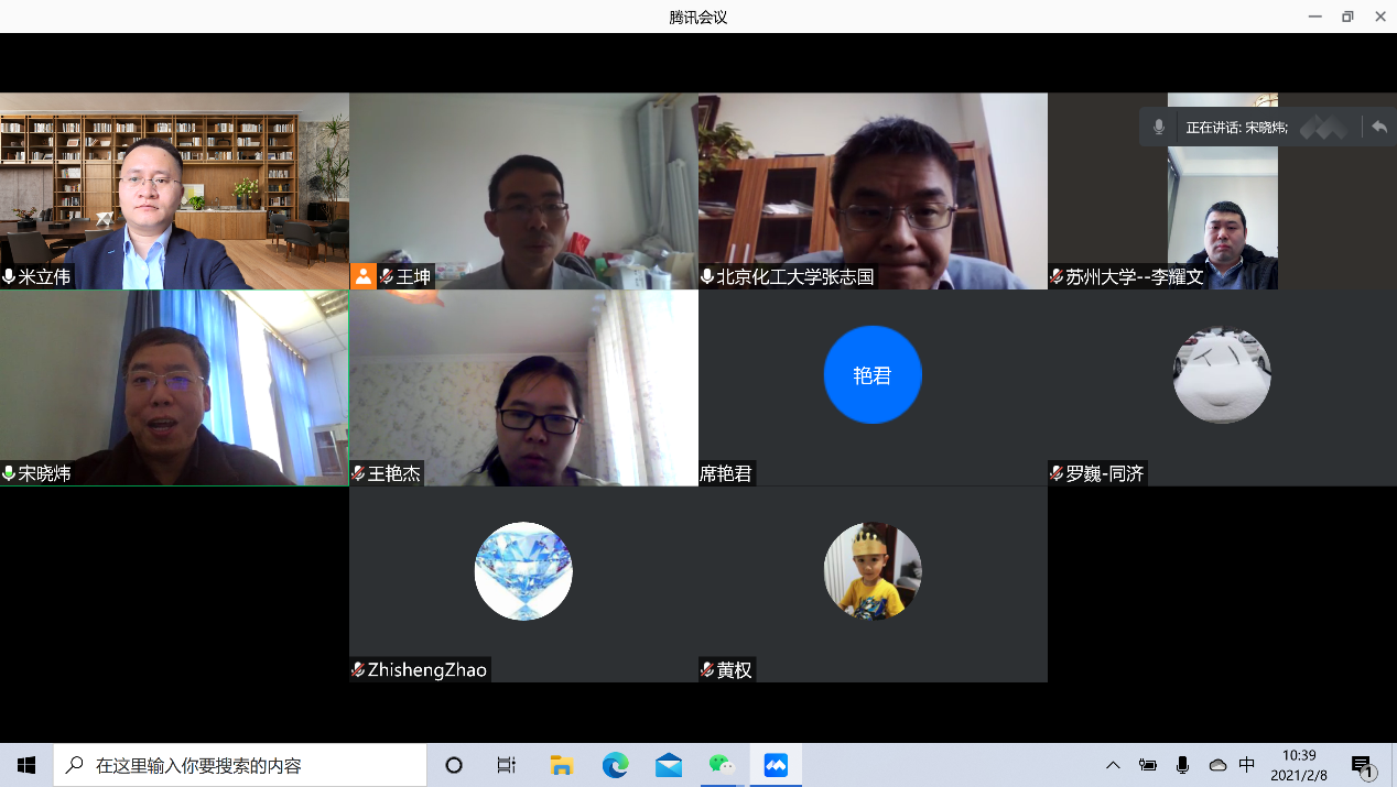 为进一步夯实爱游戏ayx官网、中心2021年国家自然科学基金项目基础,将基金申报工作做实、做细,2月8日,爱游戏ayx官网特邀请到了同济大学罗巍教授,燕山大学赵智胜教授、北京化工大学张志国教授、苏州大学李耀文教授对爱游戏ayx官网、中心筛选出的基金申报书进行评审。科技处处长宋晓炜教授参加会议,米立伟院长主持会议,席艳君副院长和部分教师代表参加会议。会议采用腾讯会议在线方式进行。