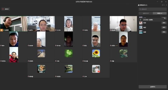 2023年12月5日,晚上8:00~9:00,应用化学基层教学组织通过企业微信线上会议召开了2023年秋季学期期中教师座谈会。会议由应用化学基层教学组织负责人刘国群主持,主要内容是每位教师总结一下开学以来的教学情况。