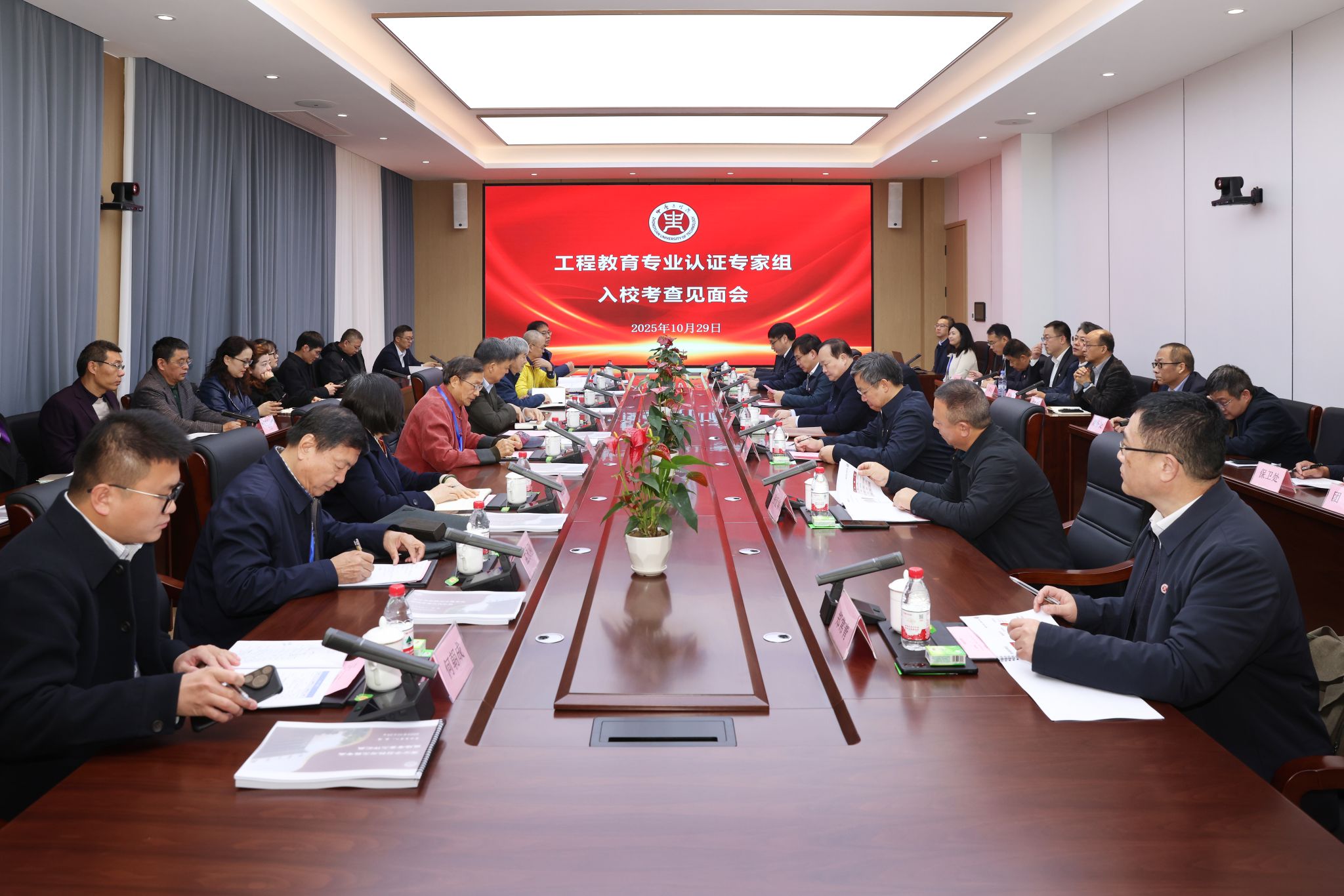 见面会上,党委书记郭涛代表学校对专家组表示欢迎,并介绍了学校工程教育专业建设总体情况及参评专业的建设成效。他指出,工程教育专业认证是构建质量监控体系、提升工程教育质量的关键举措,对专业未来发展具有重要引领作用,恳请专家组在考查过程中多提宝贵意见,并明确要求学校各相关单位全力配合专家组的各项考查工作,确保考查顺利推进。