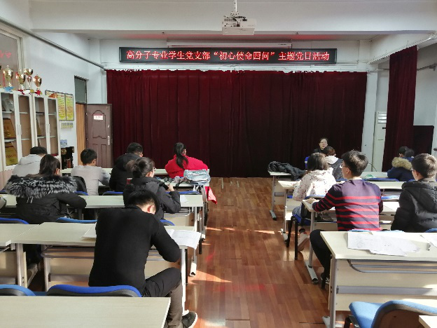 高分子党支部本着初心使命四问的主题,从“入党初心是什么”一步步深入分析挖掘,其支部书记李福华通过多个反问句询问学生,强化不忘初心宗旨意识,激发学生党员们守初心、担使命的内生动力。