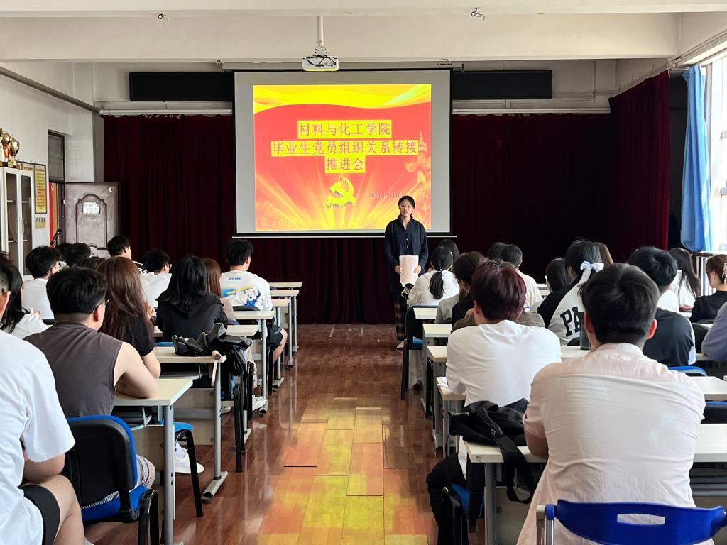 为加强对2024届毕业生党员的教育管理,规范党员组织关系转接程序,完善毕业生党员档案整理等工作,2024年5月10日下午,材料与化工学院召开毕业生党员组织关系转接推进会,会议由学院党委副书记熊瑛主持,学院科级组织员洪潇、全体毕业生党员参加会议。