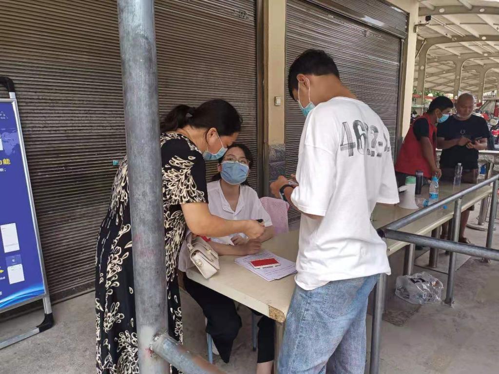 我主要是做信息录入工作,信息录入并不复杂,可以通过扫码或者将检测人的信息输入系统完成。难的是,帮助填写信息的志愿者们,要顶着太阳,外面还有蚊虫叮咬,还有医护人员,几个小时的班,穿着防护服,是不能上厕所的。