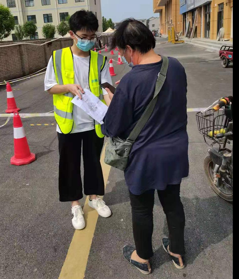 在全民核酸检测期间,协助社区工作人员维持核酸检测秩序,确保核酸检测有序进行,帮助医务人员对核酸检测人员进行信息登记,帮助腿脚不便老人完成核酸检测;