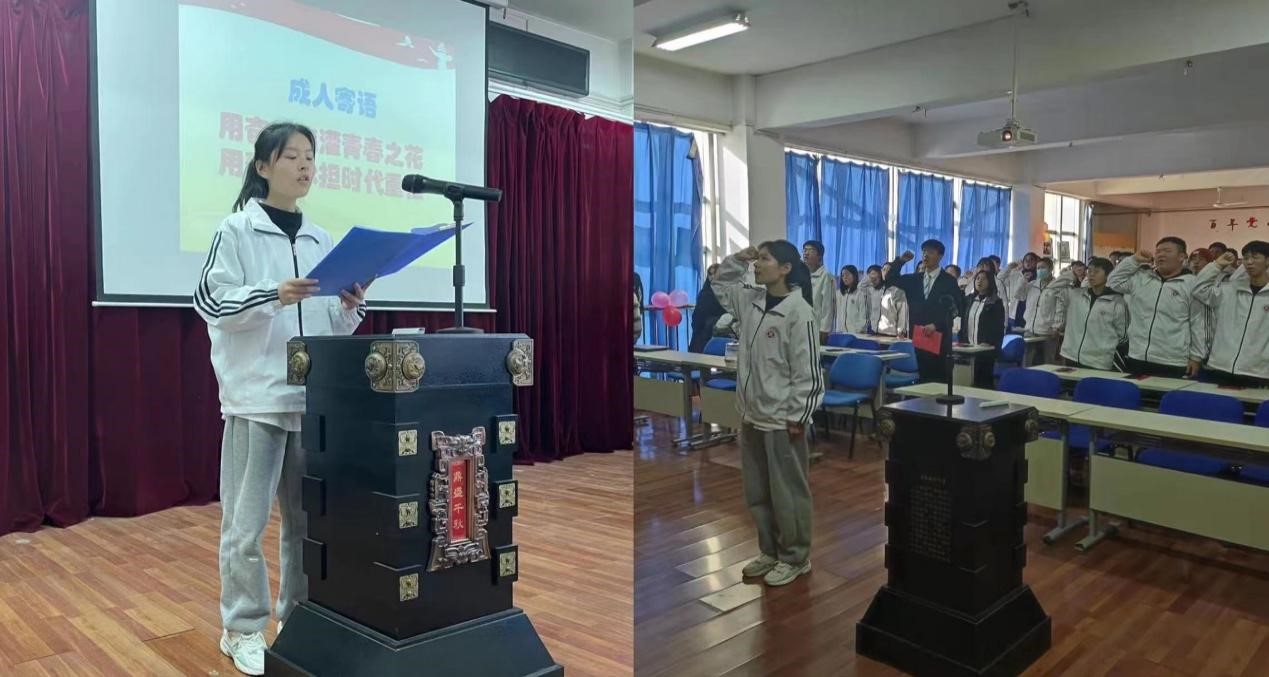 来自材控212的杨怡鹏同学作为学生代表进行了表态发言。她说出了全体与会同学的心声和感慨:18成人,18而立,懂得感恩,承担责任,勇敢告别,拥抱未来,不惧人海茫茫,心中永远有光。发言完毕后,杨怡鹏带领现场同学进行了庄严宣誓,全体同学坚定的誓言展现出同学们立足新起点、迈向人生更高峰的信心和决心。活动在同学们昂首阔步踏过成人门后圆满结束。