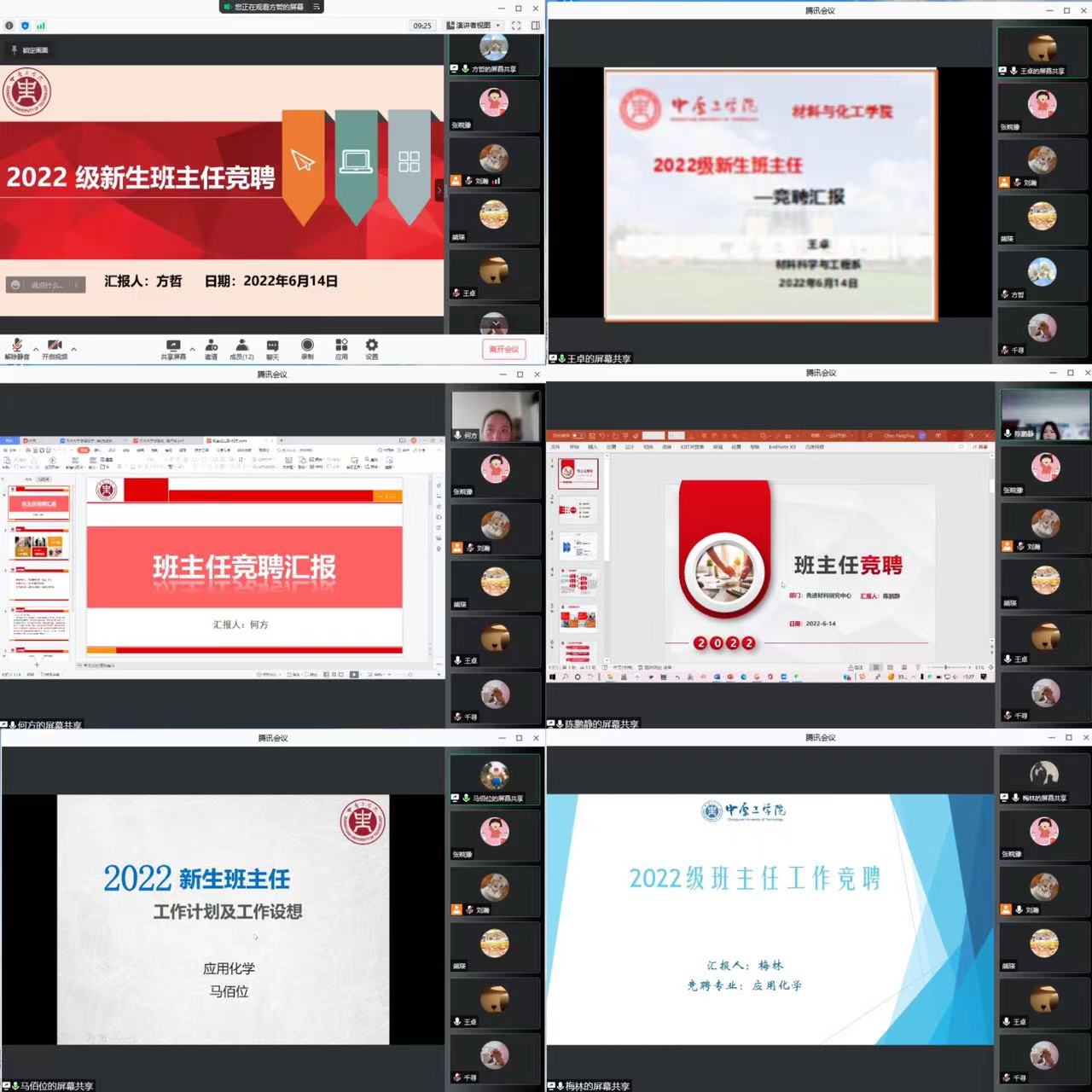 为有效提升班主任队伍管理育人水平,全面构建班主任工作的长效机制,进一步落实精细化学生服务管理,2022年6月14日,材料与化工学院举行2022级班主任竞聘大会。学院党委副书记熊瑛及全体辅导员参加会议,会议由学工办主任刘瀚主持。
