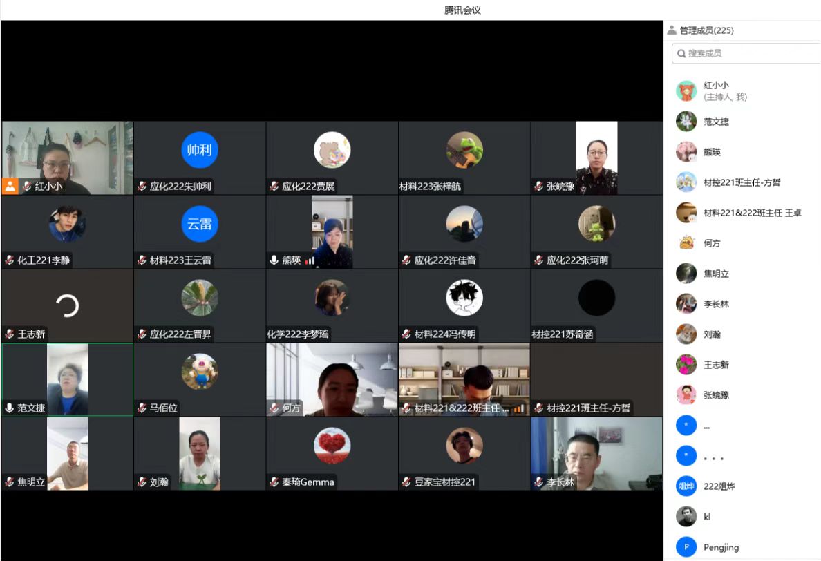 9月20日下午,材料与化工学院召开“扬帆起航  筑梦前行”2022级新生网上主题见面会。学院党委书记李长林、副书记熊瑛、金刚石实验室副主任王志新、副院长范文捷、副院长秦琦、副院长焦明立,以及青年骨干教师代表艾文英、全体新生和辅导员、班主任参加见面会。大会由学院党委副书记熊瑛主持。