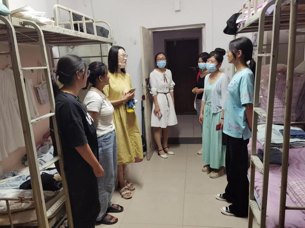 9月13日,我院喜迎2022级新生。副书记熊瑛带领新生辅导员、班主任深入新生宿舍走访,了解新生入校后的思想动态、身心健康及生活情况,帮助新生更好地适应即将到来的大学生活。走访宿舍过程中,熊瑛仔细询问新生生活习惯与饮食起居、学习生活方面的困难和问题,叮嘱同学们要增强个人安全意识,珍惜在校时光,营造安全、舒适、和谐的宿舍文化氛围。辅导员和班主任有针对性地解答了同学们在专业学习、未来规划等方面的疑问,建议科学制定学期计划,确立个人职业生涯发展目标,以最佳的状态开启大学生活。同学们与老师们热烈交流着学校的见闻和感想,言语中不时透露出入学的喜悦和对大学生活的美好憧憬。