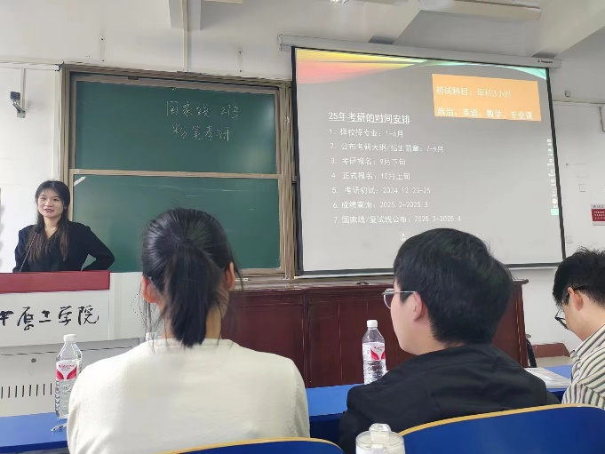 交流分享中,优秀毕业生们就如何考研复习做了详细介绍。他们结合自身经历,围绕院校选择、考研流程、备考经验等,向2021级的同学讲述了考研的宝贵经验,分享了研究生考试的技巧,同时提醒大家尽早确定目标,注重学习方法,提高学习效率。同学们积极提问,学长学姐们耐心解答,现场氛围热烈。