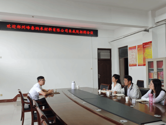 9月12日上午,郑州峰泰纳米材料有限公司行政经理李东晓一行来爱游戏ayx官网招聘洽谈。学院党委副书记熊瑛、高分子系主任宋梦、2026届毕业班辅导员惠显帅参加座谈。