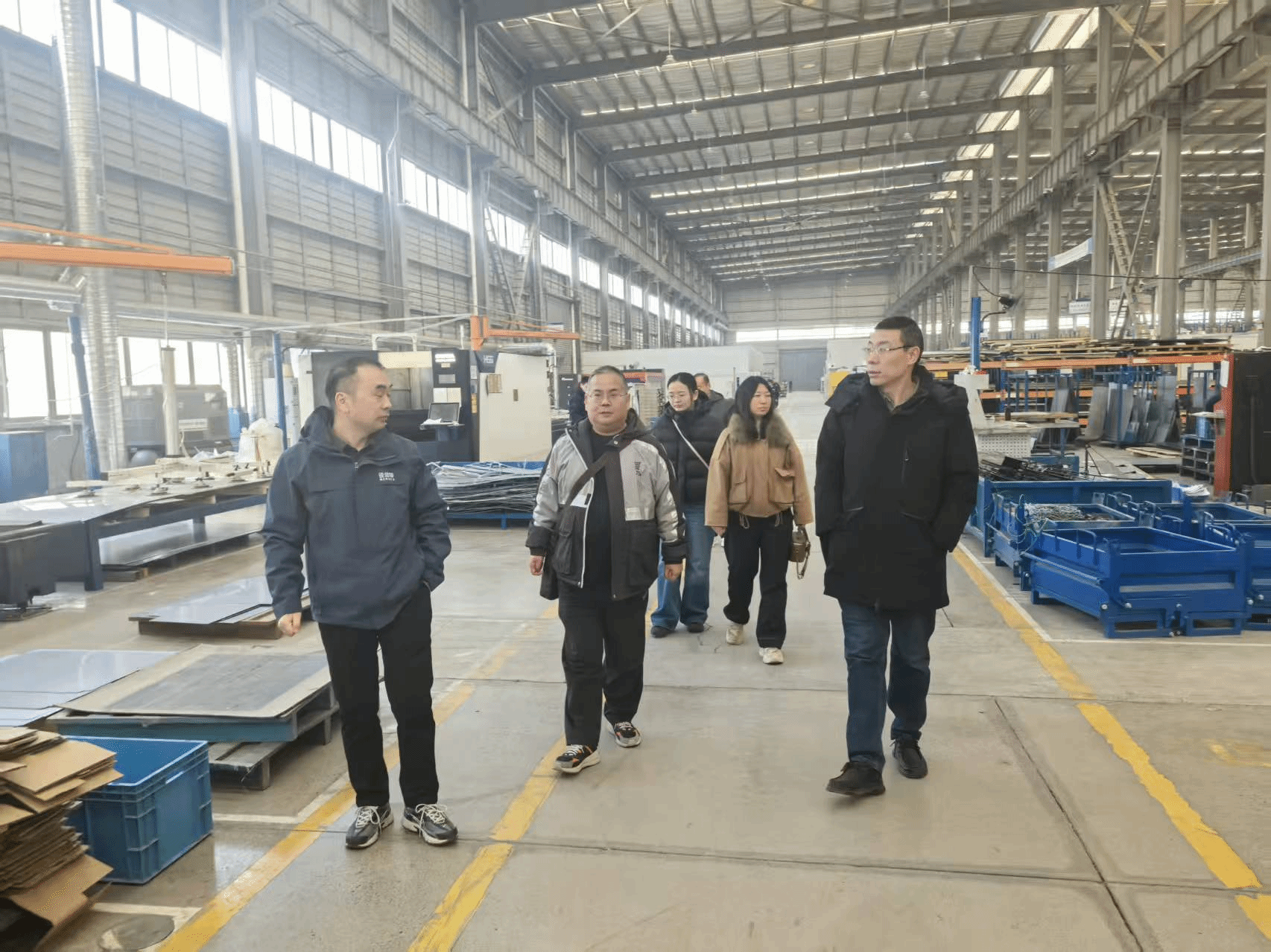 在王现伟的陪同下,焦明立一行深入企业生产车间,实地查看了制冷空调设备的核心生产流程、装配工艺及性能检测环节。企业技术总监详细介绍了公司在高效制冷系统设计、节能控制技术研发等领域的创新成果,重点展示了自主研发的环保型空调设备在降低能耗、提升换热效率方面的技术优势,以及产品在工业领域、化工行业等场景的应用案例。考察过程中,王志新结合学院在材料改性及防腐技术、储能技术等领域的研究方向,与企业技术团队就空调设备核心部件的新材料开发及材料性能优化等关键技术问题展开现场交流,对企业聚焦绿色、高效节能领域的发展定位给予高度评价。