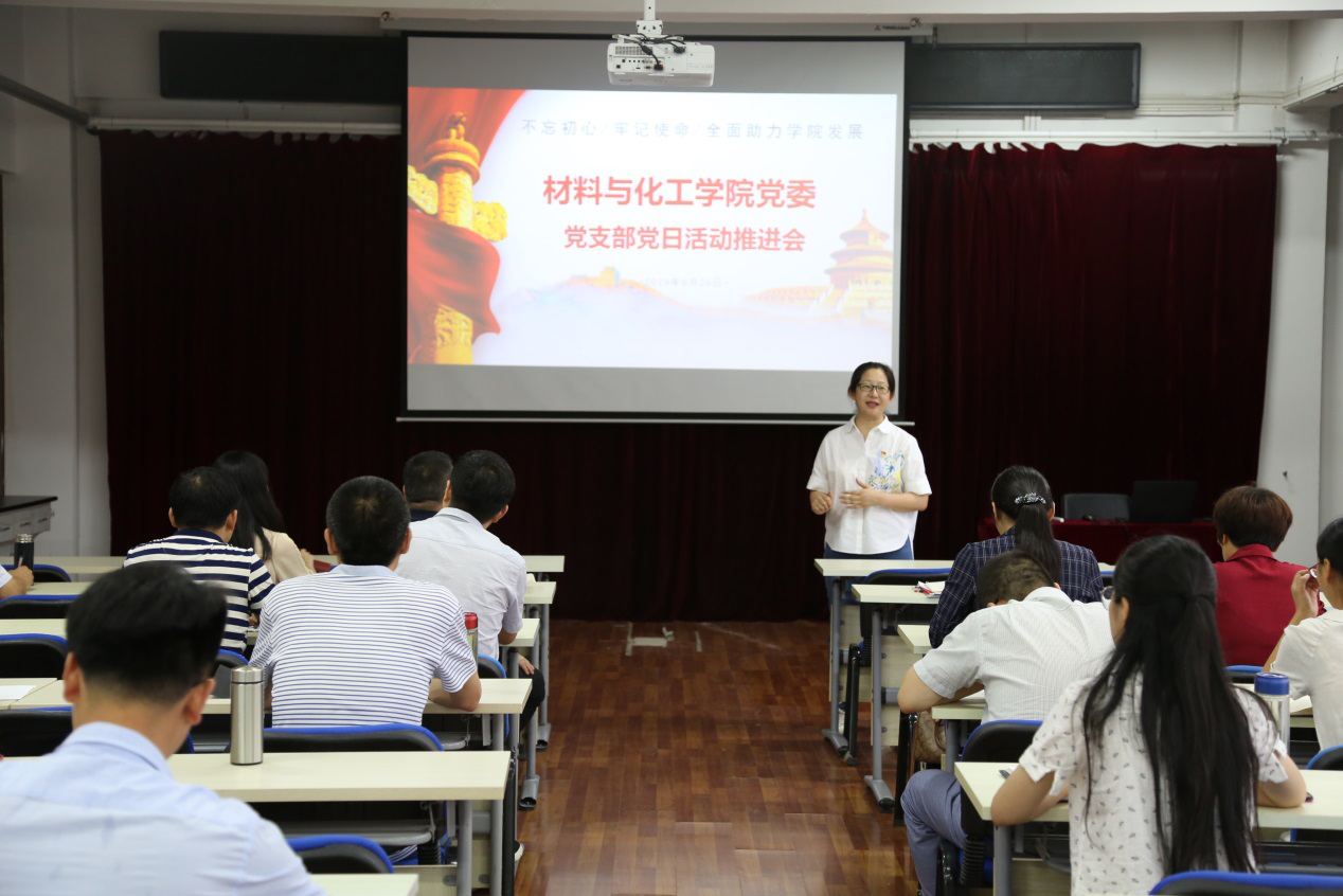 6月20日,材料与化工学院党委召开2019党支部党日活动推进会,会议在2号实验室543会议室举行,学院领导班子部分成员、各党支部书记、支部委员等参加。会议由党委书记杨佩主持。