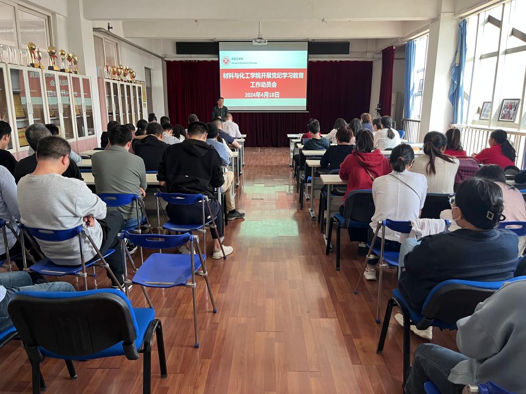 4月18日下午,材料与化工学院召开党纪学习教育工作动员会,学院领导班子成员、党委委员、各党支部书记以及全体教工党员参加会议。会议由学院党委书记李长林主持。