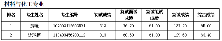 按照学校研究生招生工作安排,材料与化工学院2023年硕士研究生复试工作(第五批调剂考生)于4月26日进行,根据复试情况,现对考生综合成绩进行公示: