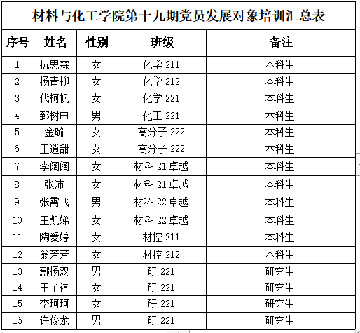 为了加强对发展党员工作的民主监督,确保发展新党员的质量,现将2024年上半年发展对象杭思霖等16名同志的名单公示如下:
