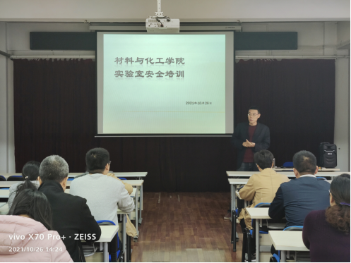 1026日,主管实验室工作的焦明立院长为全体实验室管理人员做了实验室安全培训,重点讲解了材化学院风险评估表的内容,并组织参观了实验室管理中心的安全主题展览。