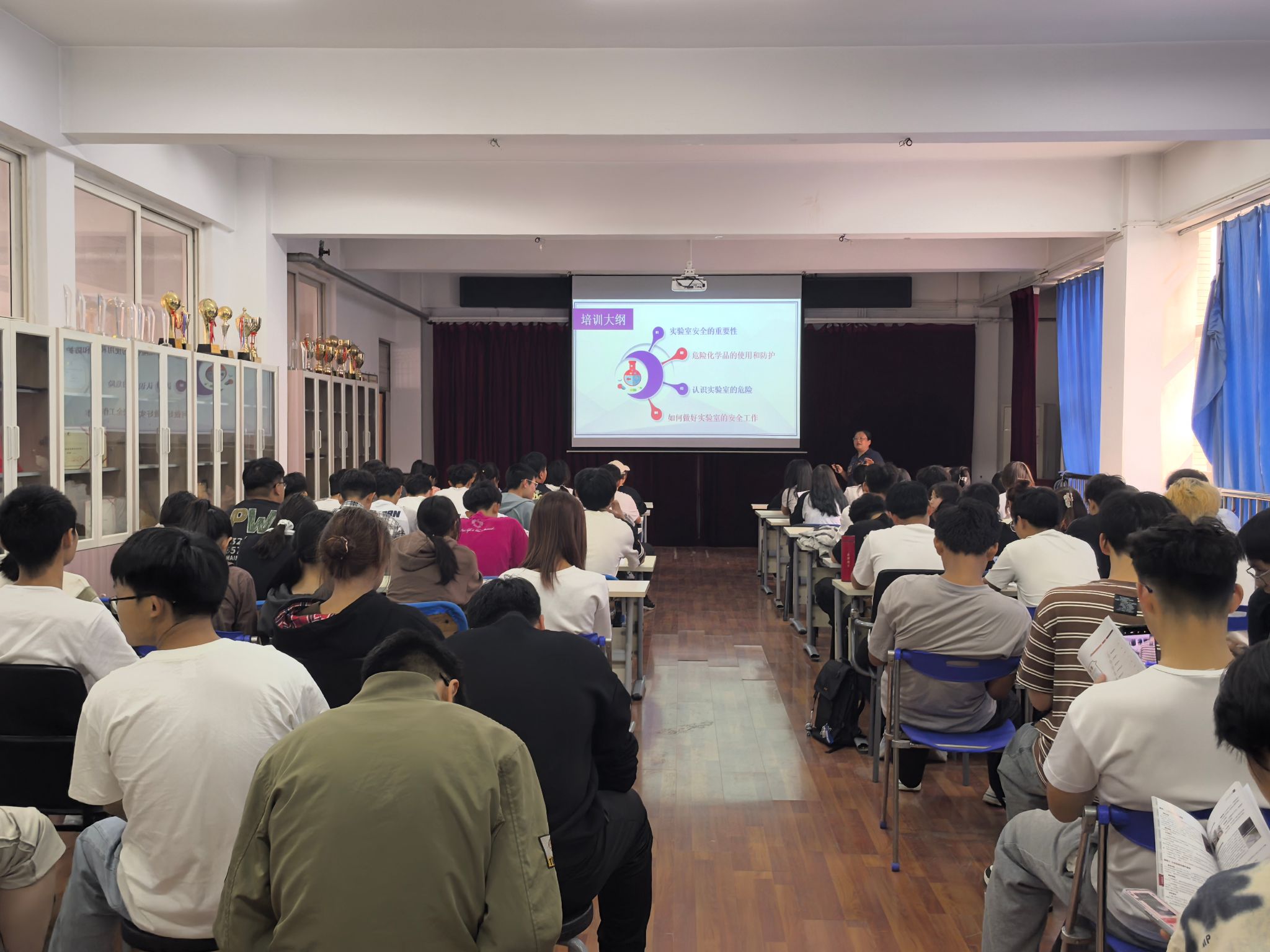 培训会上,两位老师通过展示近几年国内高校典型实验室安全事故及其起因,让新生们直观感受到了实验室安全事故所带来的巨大危害,从而深刻认识到遵守实验操作规程、确保实验安全的重要性。培训会内容涵盖了实验室安全的多个方面,包括实验室安全准入细则、基础安全与个人防护、化学安全、机电安全、特种设备与冷热设备安全等,并对实验室安全考试工作进行了具体安排。