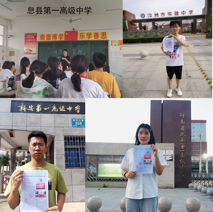为提高学校和专业知名度,吸引更多优秀生源进入学院和专业学习,2019年暑期,材料科学与工程专业组织在校生分别回访息县第一高级中学、汝州市实验中学、新安第一高级中学和河南省沈丘县第一高级中学等母校,发放《爱游戏ayx官方网站材料科学与工程专业招生宣传手册》,宣传学院和专业的招生政策、人才培养特色、师资力量、培养目标、毕业要求和就业等情况,并现场解答学弟学妹们的疑问。