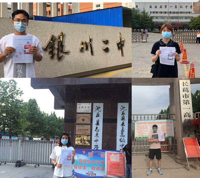 为提高学校和专业知名度,吸引更多优秀生源进入学院和专业学习,2020年6月,材料科学与工程专业组织部分在校生在疫情有所缓解期间,分别赴银川市第二中学、安阳县第一高级中学、沈丘县志远中学、长葛市第一高级中学,发放《爱游戏ayx官方网站材料科学与工程专业招生宣传手册》,宣传本学院和专业的招生政策、人才培养特色、师资力量、培养目标、毕业要求和就业等情况,并现场解答学弟学妹们的疑问。