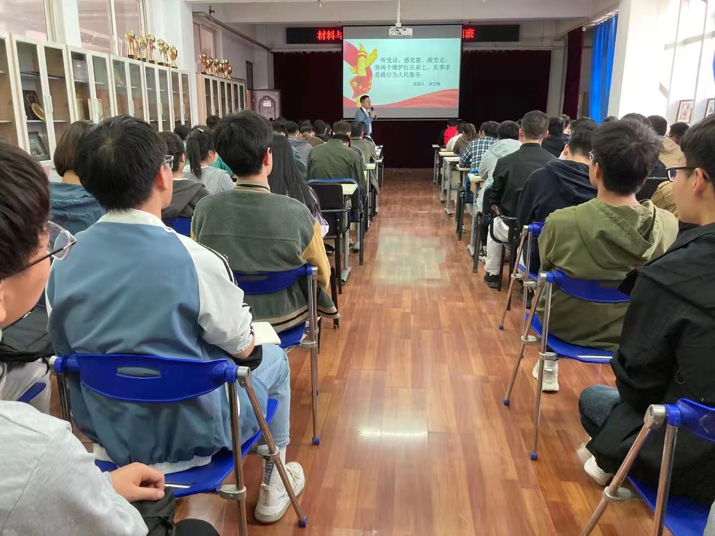 428日,按照材料与化工学院党委的部署,在2号实验楼543举行“听党话,感党恩跟党走,将两个维护扛在肩上,实事求是践行为人民服务的党课学习交流活动本次党课分享交流由材料与化工学院院长米立伟教授作为分享人,学院辅导员、学生干部、入党积极分子等一百余名师生与会聆听。