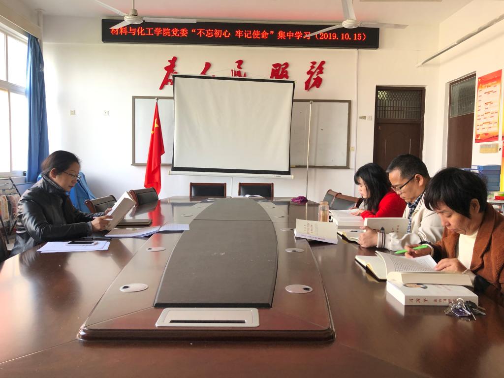 10月15日,材料与化工学院党委理论中心组召开“不忘初心 牢记使命”主题教育第四次集中学习。杨佩书记主持本次会议。